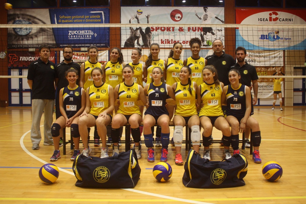 in piedi da sinistra: Morri Mauro (dirigente squadra); Casadei Sofia, Bianchi Francesca, Agostini Aurora; Zammarchi Chiara, Frisoni Chiara; Pellegrini Claudia, Pivi Virginia, Morri Asia, Carone Vittorio (1° allenatore)